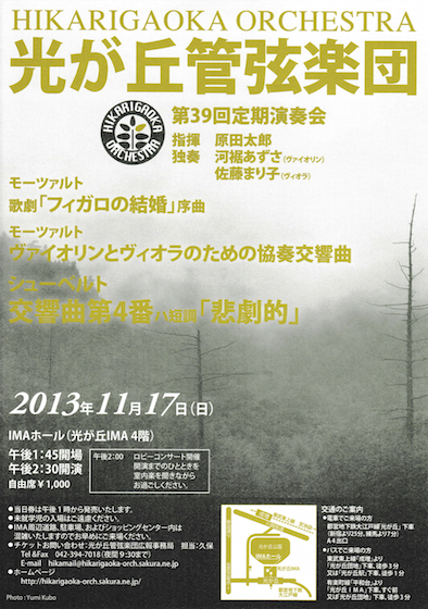 | 39 | 2013/11/17 | 原田 太郎 | Vn:河裾あずさ / Vla:佐藤まり子 | モーツァルト 歌劇「フィガロの結婚」序曲 |