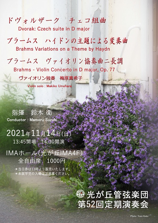 | 52 | 2021/11/14 | 鈴木 衛 | Vn:梅原 真希子 | ドヴォルザーク チェコ組曲 |