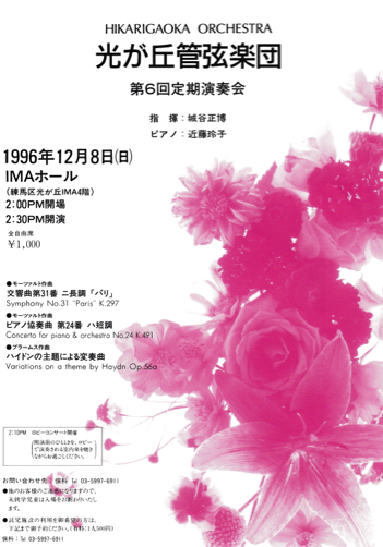 | 6 | 1996/12/08 | 城谷 正博 | Pf:近藤 玲子 | モーツァルト 交響曲第31番 ニ長調 「パリ」 |