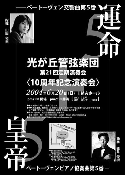 | 21 | 2004/06/20 | 山田 和樹 | Pf:碓井 俊樹 | ベートーヴェン ピアノ協奏曲第5番「皇帝」 |
