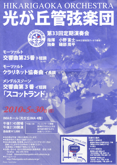 | 33 | 2010/05/30 | 小野 富士 | Cl:磯部 周平 | モーツァルト 交響曲第25番 ト短調 |