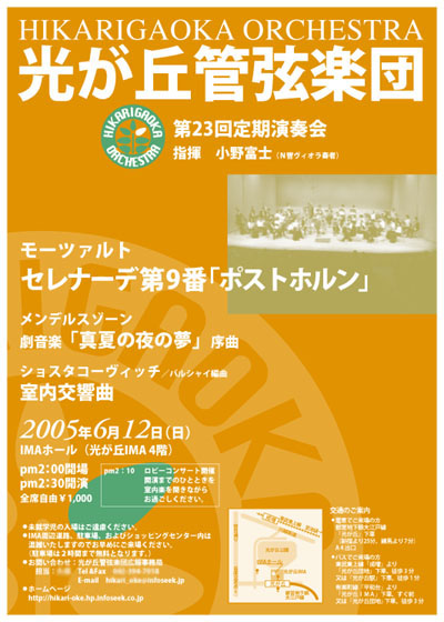| 23 | 2005/06/12 | 小野 富士 | メンデルスゾーン 劇音楽「真夏の夜の夢」序曲 |