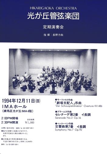 | 2 | 1994/12/11 | 長野 力哉 | モーツァルト 「劇場支配人」序曲 |
